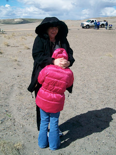 It was very windy and cold, so Rachel decided to take a break and get warmed up by Mimi